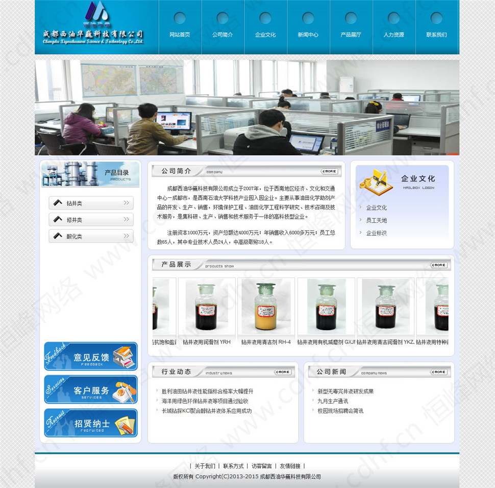 成都(dōu)西(xī)油華巍科技有(yǒu)限公司成立于2007年,位于西(xī)南地(dì)區經濟、文(wén)化和(hé)交通中心—成都(dōu)市,是西(xī)南石油大(dà)學科技産業(yè)園入園企業(yè)。主要從事油田化學助劑産品的(de)開(kāi)發、生産、銷售,環境保護工(gōng)程、油田化學工(gōng)程科學研究、技術(shù)咨詢及技術(shù)服務,是集科研、生産、銷售和(hé)技術(shù)服務于一體的(de)高(gāo)科技型企業(yè)。