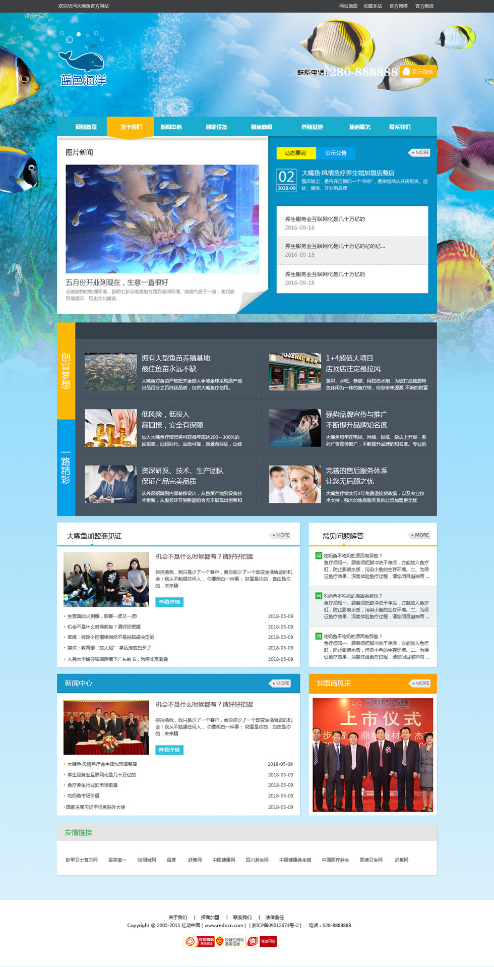 歡迎你(nǐ)對我們藍色海(hǎi)洋休閑魚療的(de)詳細了解。我們公司打破傳統魚療,有(yǒu)最專業(yè)的(de)團隊,頂尖的(de)魚療技術(shù),經過多年實踐經驗,最新推出:“2016年新一代魚療設備,技術(shù)”。外觀更時尚,優美(měi),操作更簡單,耐用(yòng)更方便,更幹淨,衛生,各大(dà)洗浴中心,汗蒸中心,風景名勝,公園,商場(chǎng)等人(rén)流量大(dà)的(de)地(dì)方,都(dōu)是理(lǐ)想選址。有(yǒu)什(shén)麽意見和(hé)建議随時來電。爲了感謝社會(huì)各界成功人(rén)士對魚療的(de)厚愛和(hé)關注,對貴公司的(de)進一步宣傳。公司承諾宗旨:(隻做最好産品,最好服務,不收最貴費用(yòng)。一次收費,永久服務)。。最新設備,技術(shù),感恩價回饋各位。全國成功人(rén)士的(de)選擇,下一個(gè)就是您! 誠邀您的(de)加盟合作,共享美(měi)好的(de)明(míng)天