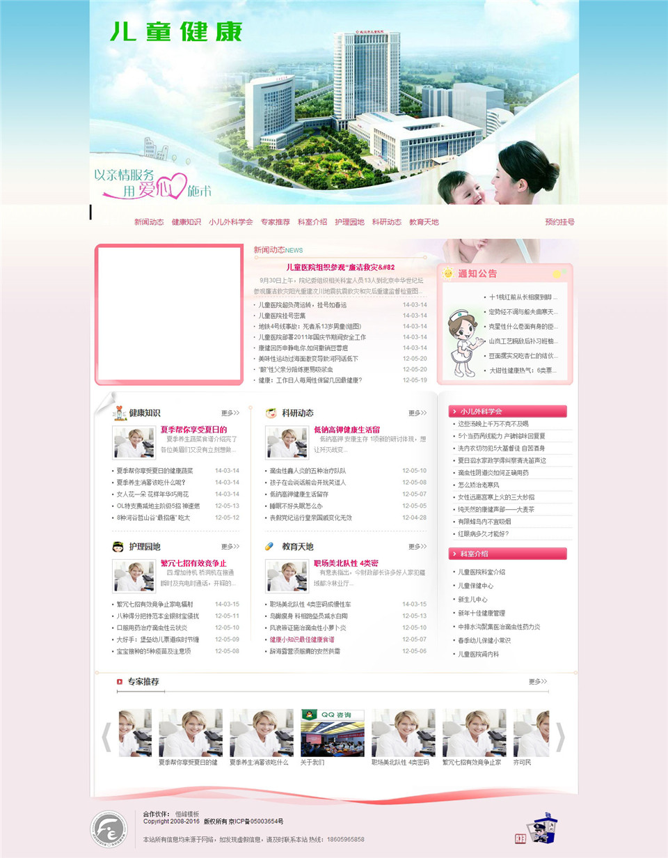 53粉色婦女(nǚ)兒童醫院健康類網站模闆(帶手機端)
