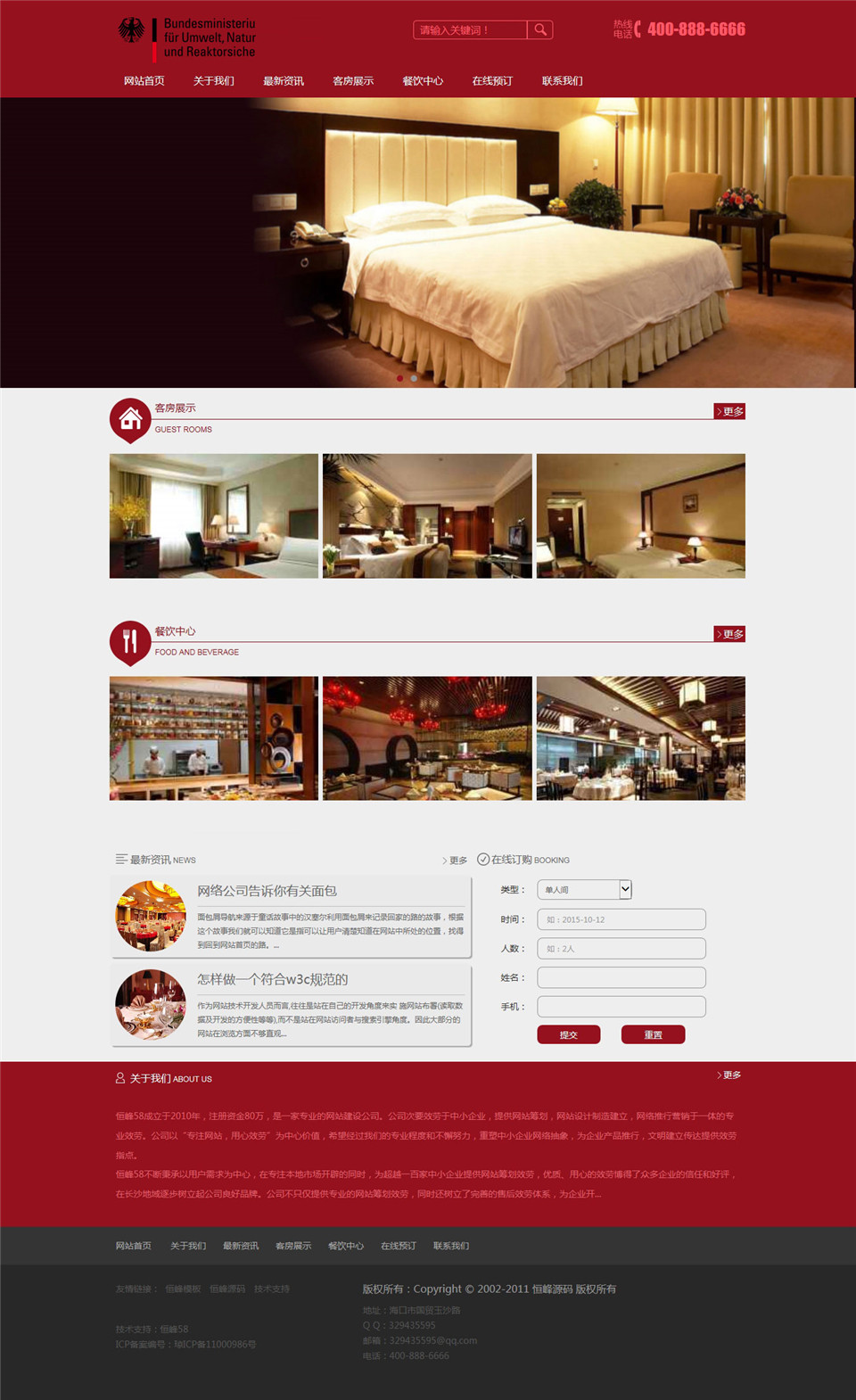 285紅色酒店(diàn)旅館餐飲類網站恒峰模闆
