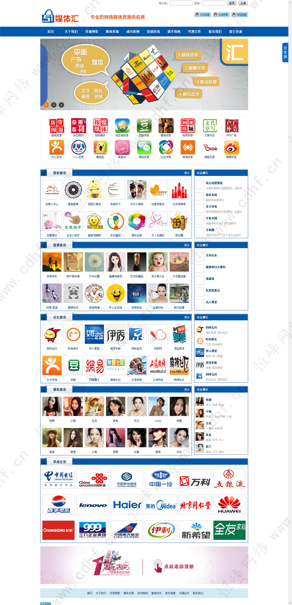51媒體彙是目前國内涵蓋網絡媒體資源數量最大(dà),涉及媒體平台最多的(de)精準網絡媒體資源平台,網站線上(shàng)涉及:新聞、論壇、微博、微信、博客、人(rén)人(rén)網、開(kāi)心網、視頻資源、APP廣告......