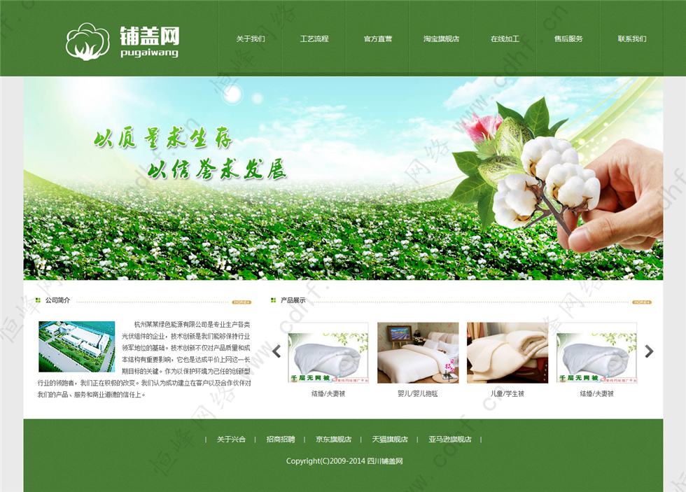 四川鋪蓋網有(yǒu)限公司隸屬南疆阿克蘇地(dì)區庫車(chē)縣興合棉花有(yǒu)限責任公司下的(de)下屬企業(yè),位于四川南部縣工(gōng)業(yè)開(kāi)發區,專業(yè)生産新疆棉胎,一直以來,公司以質量求生存,以信譽求發展爲核心理(lǐ)念,立志打造以互聯網爲核心技術(shù)的(de)一體化特色企業(yè),爲老百姓開(kāi)通綠(lǜ)色棉胎通道的(de)特色品牌。